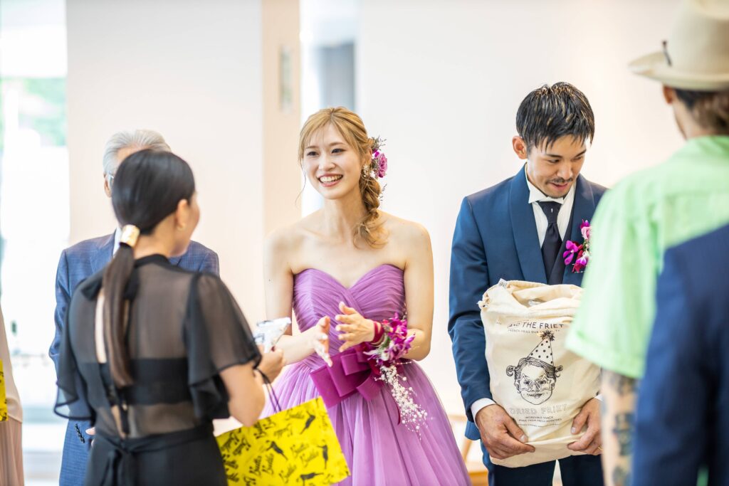 堅苦しい、かしこまった結婚式は好きじゃなく、カジュアルでパーティーのような結婚式がしたかったので 結婚式で心に残ったことは何ですか全部!!ですが、ケーキで妊娠報告したのと、抽選でのサンクスバイトが盛り上がった印象です!