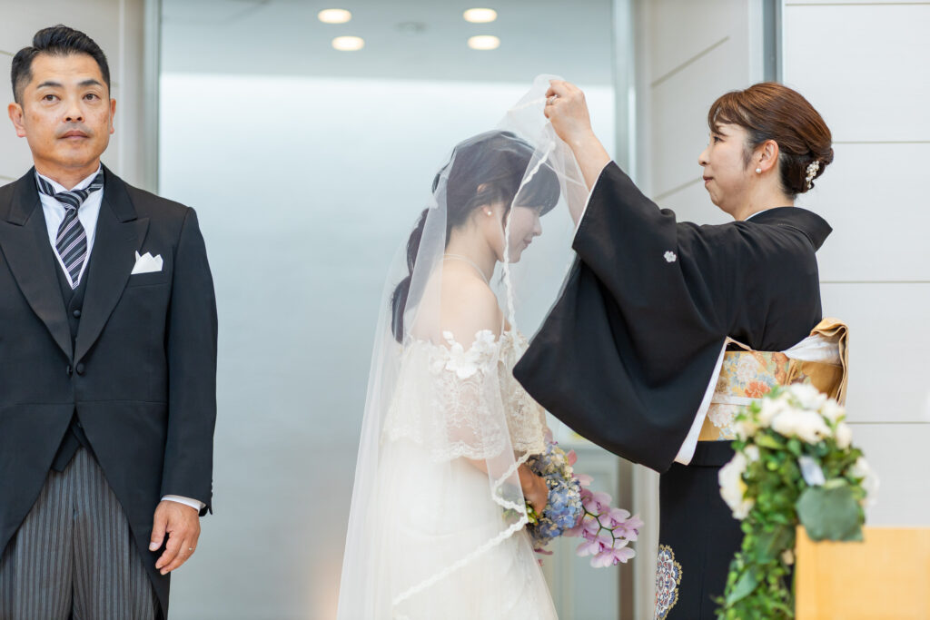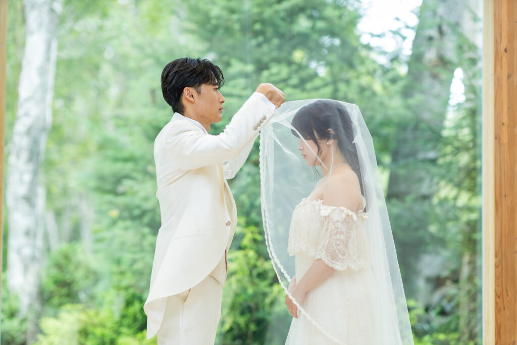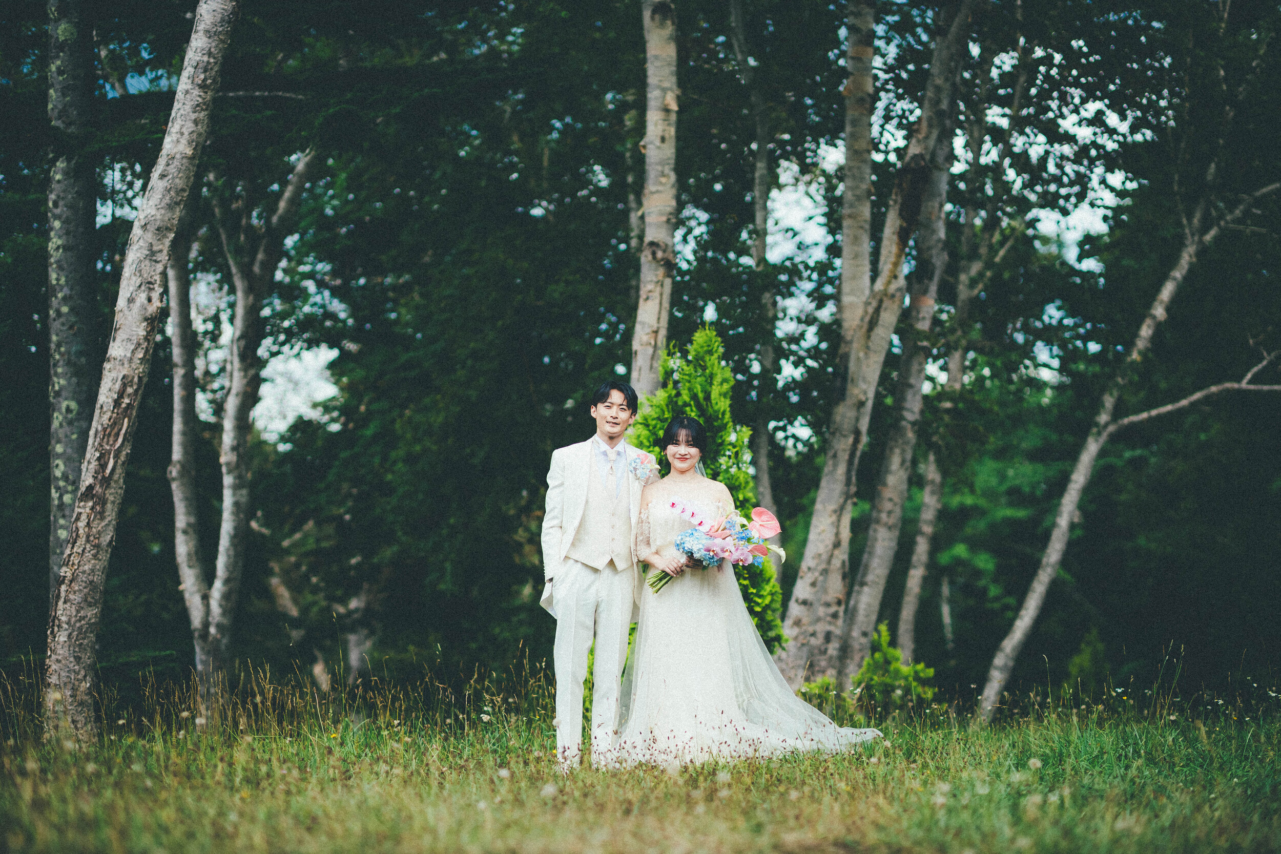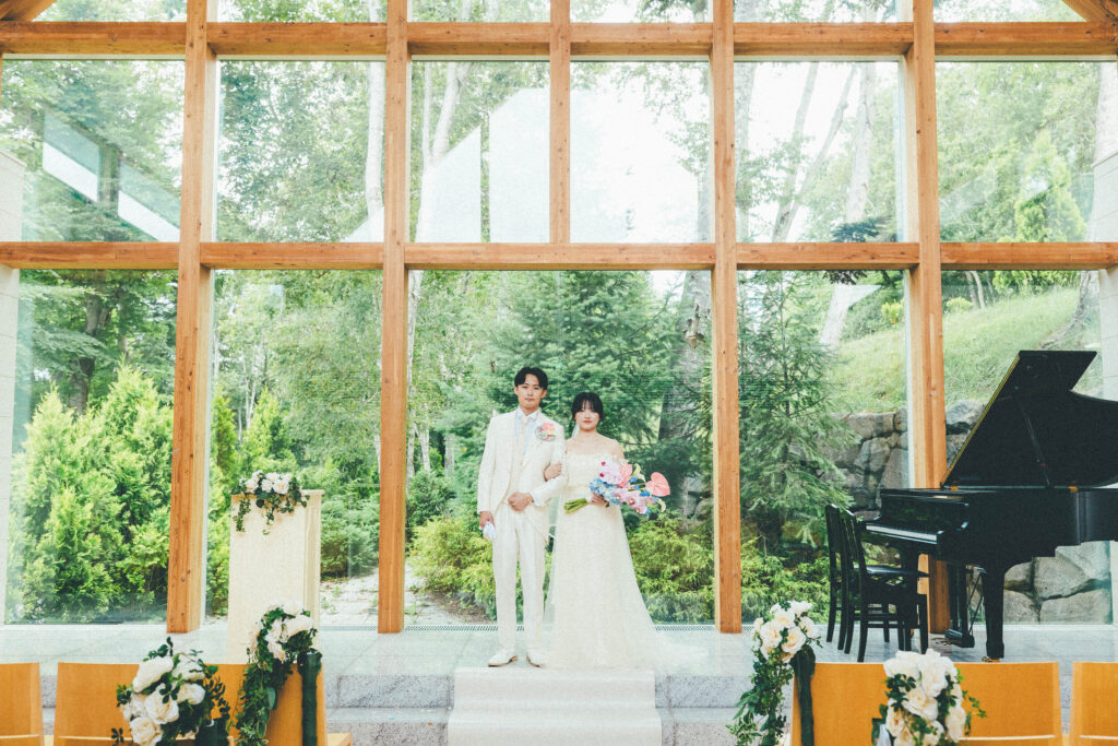 天井からの自然光藻岩山の温もりのある木々たちの色合いそんなナチュラルな空間でおふたりは人前式で結婚式を執り行いました人前式では、ご両親や友人も参加してもらう演出を取り入れるなどとてもステキな時間となりました