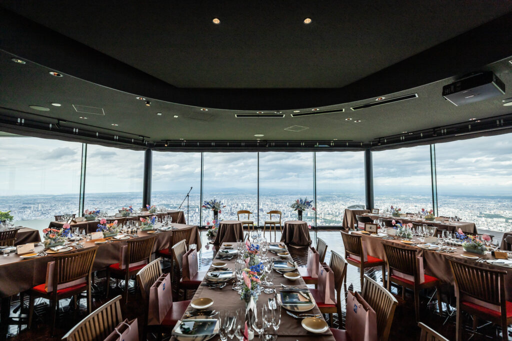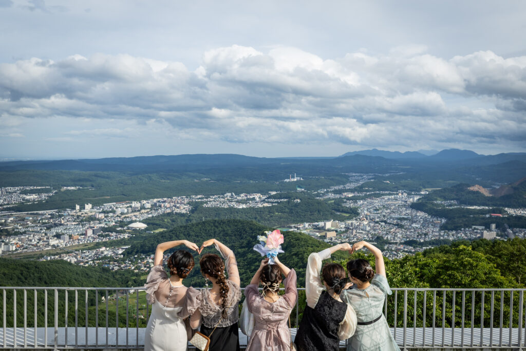 自然を感じる緑と一番の魅力である景色を感じる事ができる特別な場所藻岩山中腹駅には挙式を執り行う式場そしてケーブルカーで向かう山頂には景色や夜景を楽しむことができるレストラン「THE JEWELS」