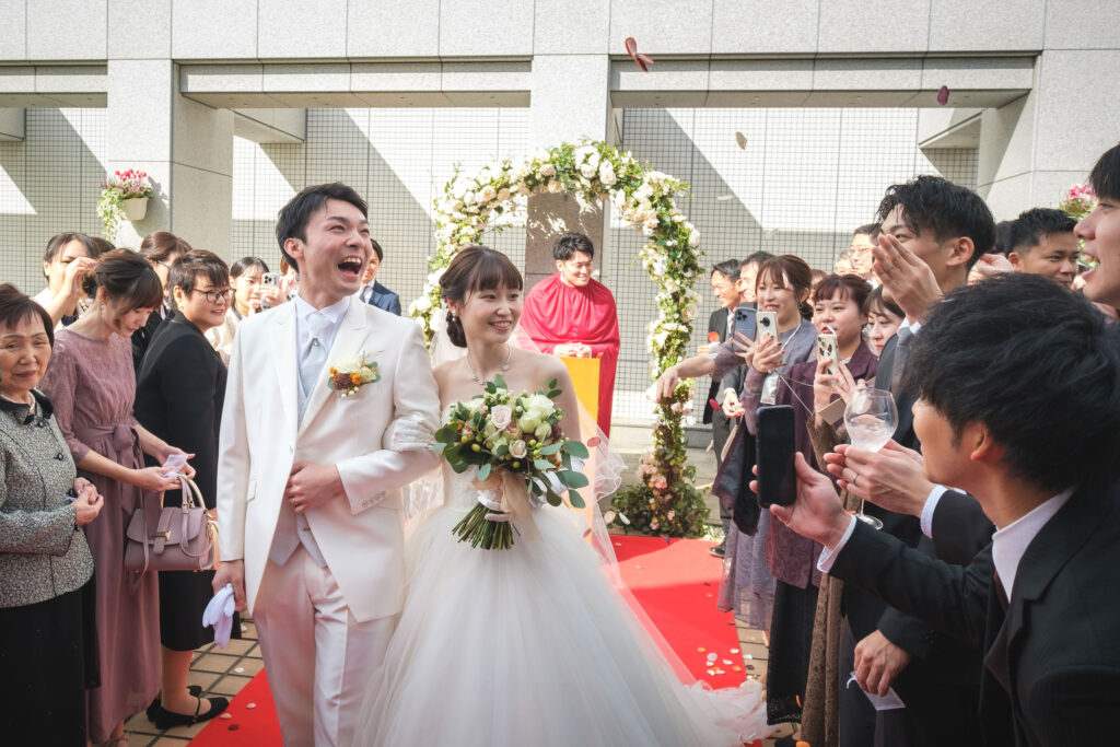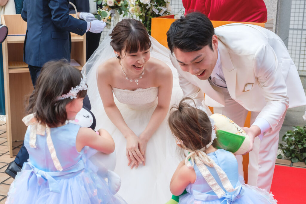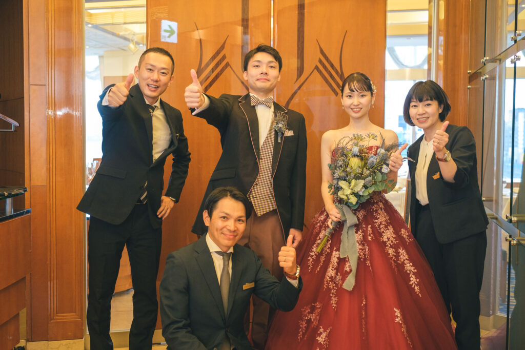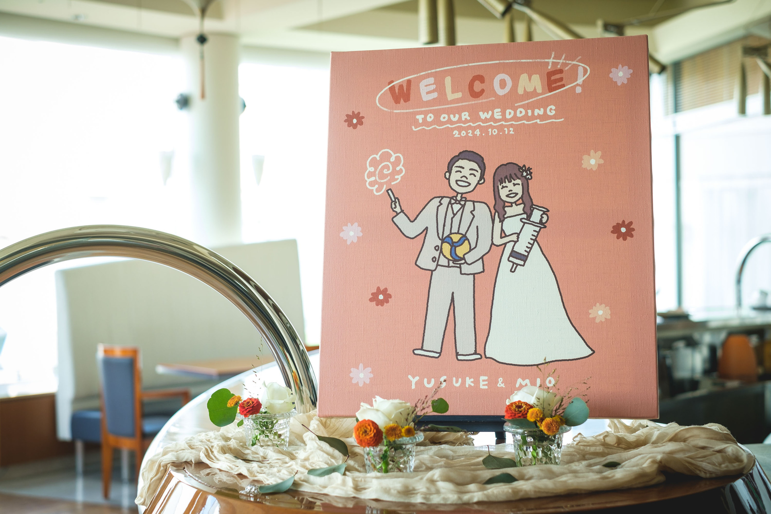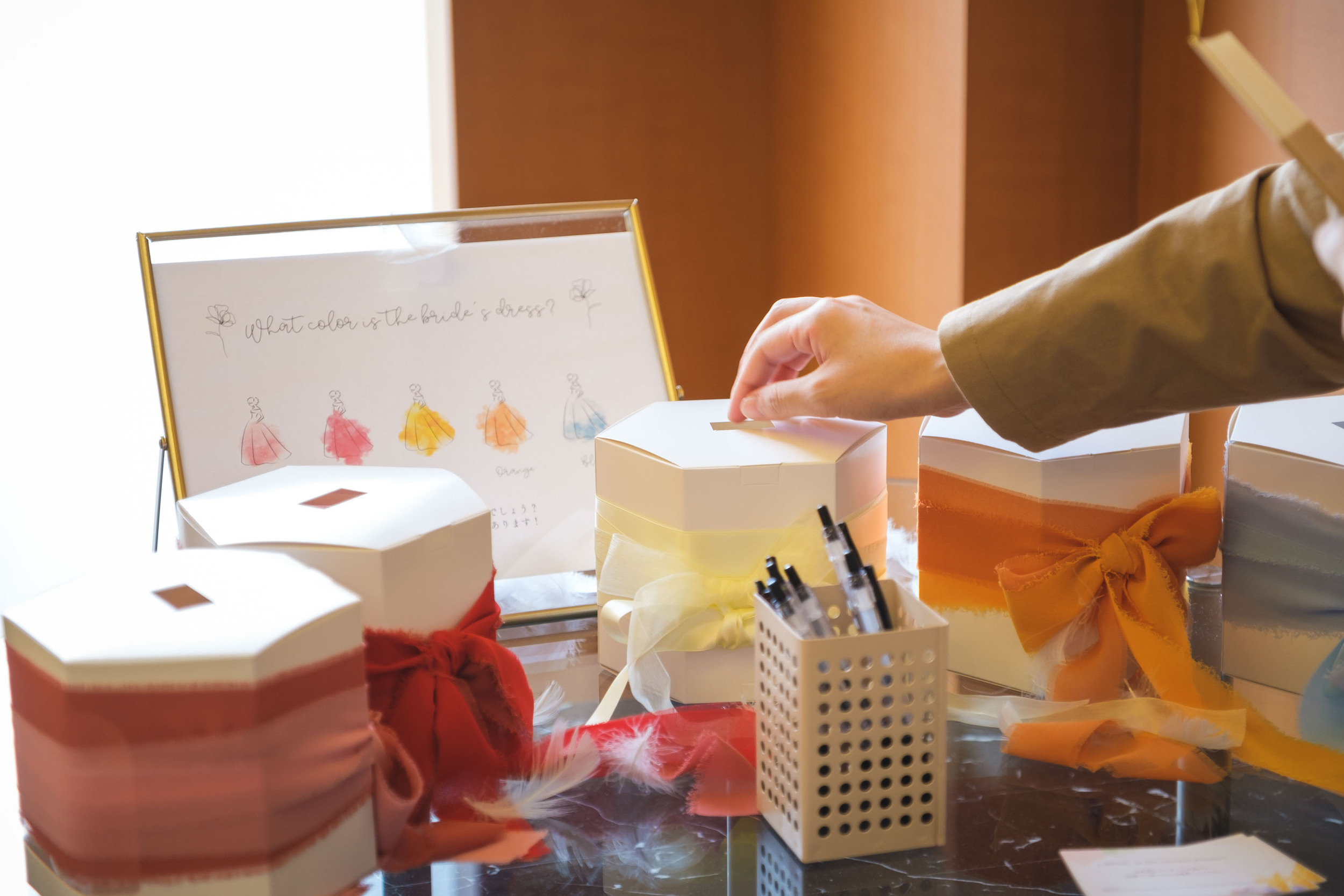 挙式は大切なゲストに見守られる人前式スタイル。新郎友人が赤いマントを纏い「牧師」として登場するサプライズには会場が温かな笑いに包まれました。 お二人の共通の趣味である「ラーメン」にちなみナルトをデザインしたオリジナルの結婚証明書が登場。受付でゲスト全員に署名していただいた世界に一つだけの証明書は、お二人とゲストの絆を象徴するアイテムとなりました。