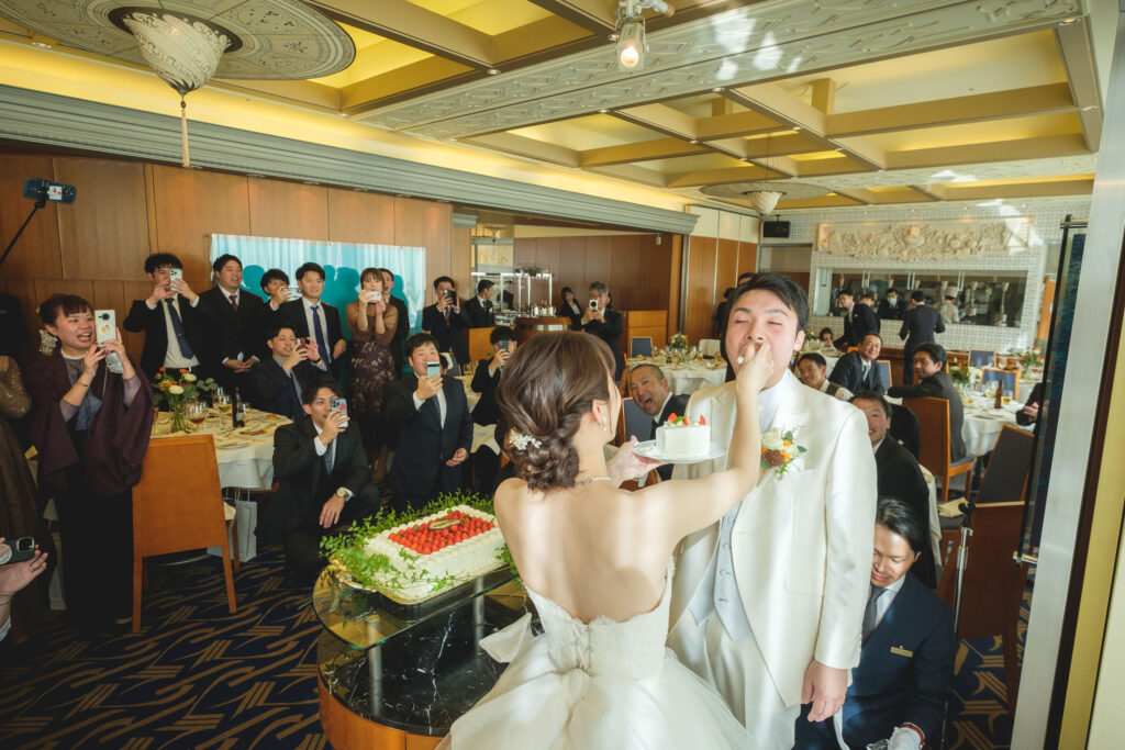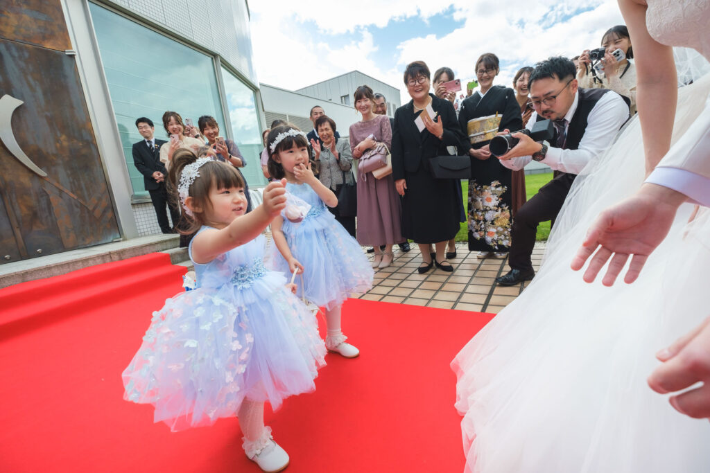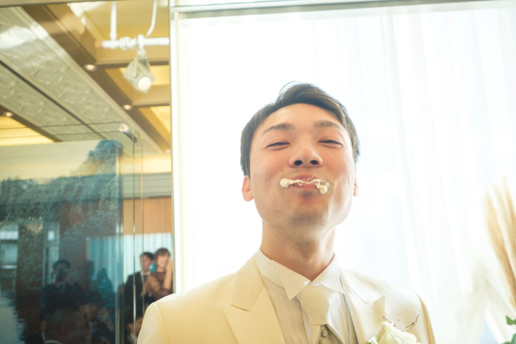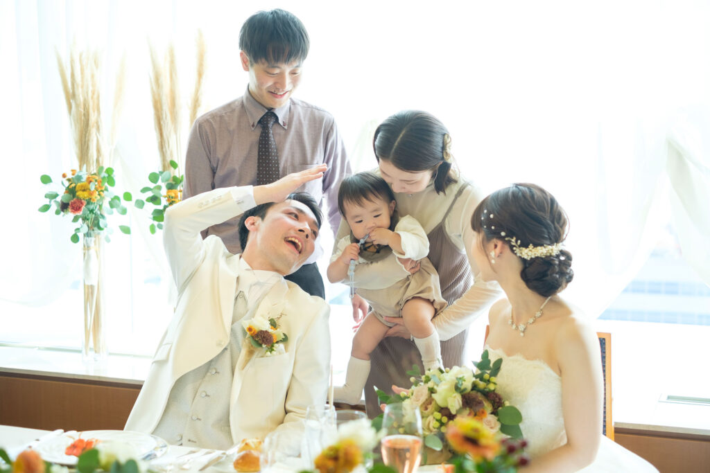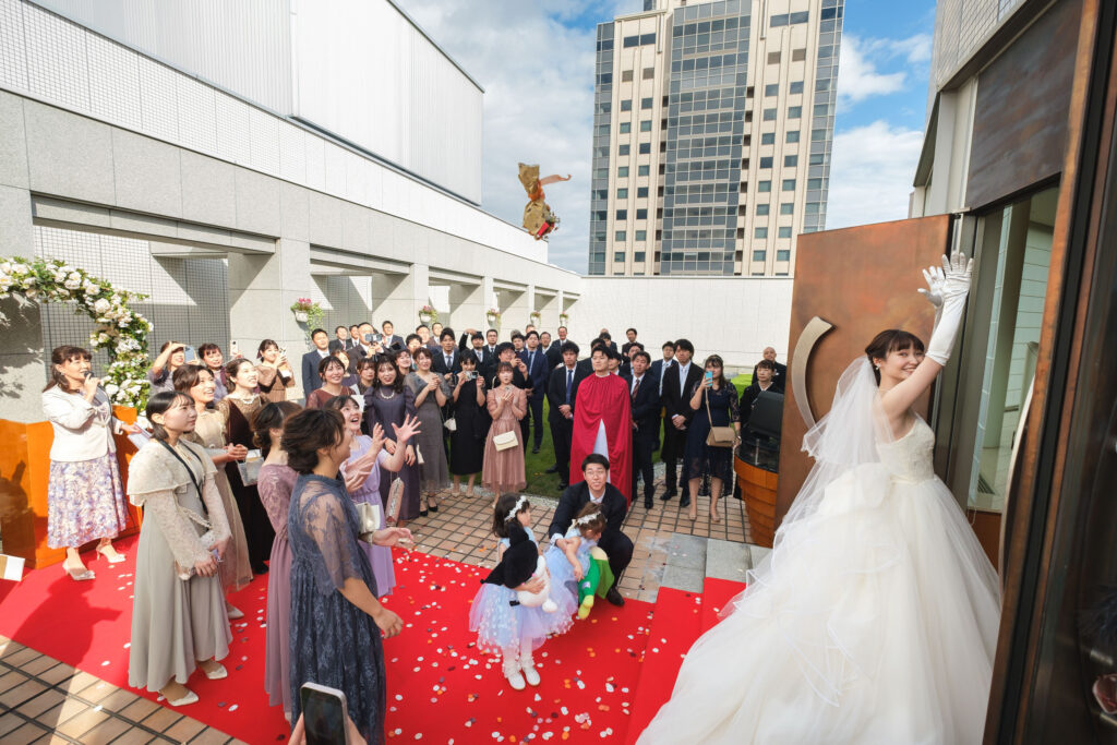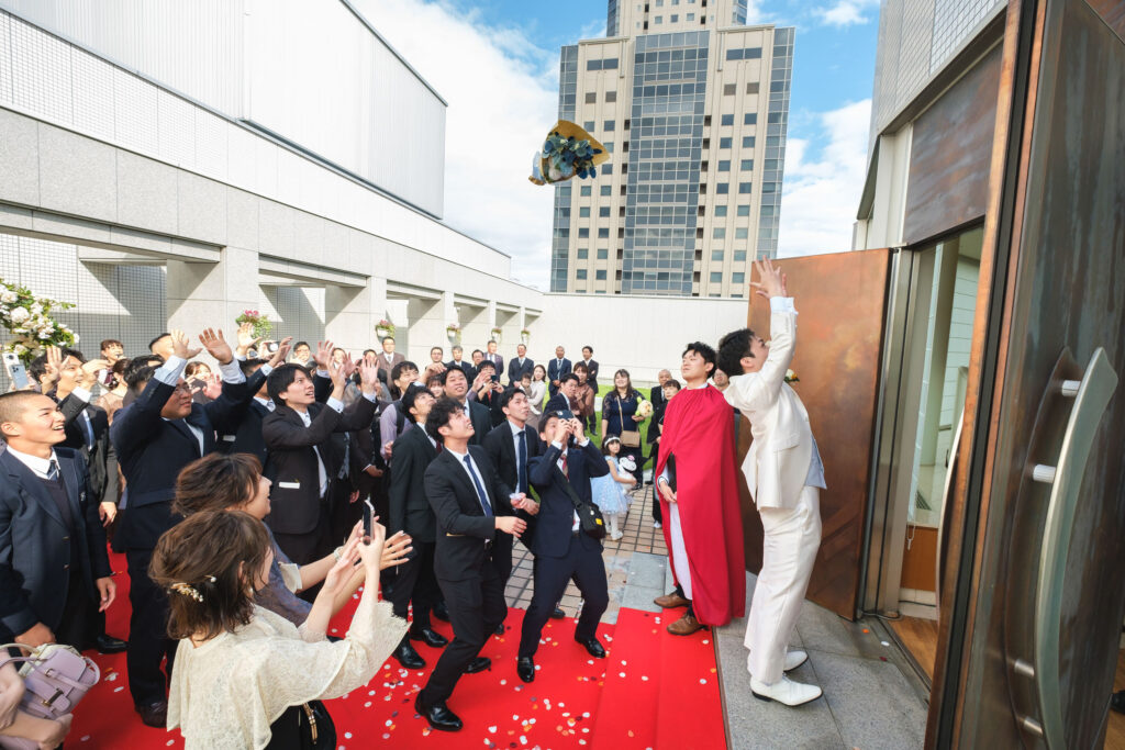 挙式は大切なゲストに見守られる人前式スタイル。新郎友人が赤いマントを纏い「牧師」として登場するサプライズには会場が温かな笑いに包まれました。 お二人の共通の趣味である「ラーメン」にちなみナルトをデザインしたオリジナルの結婚証明書が登場。受付でゲスト全員に署名していただいた世界に一つだけの証明書は、お二人とゲストの絆を象徴するアイテムとなりました。