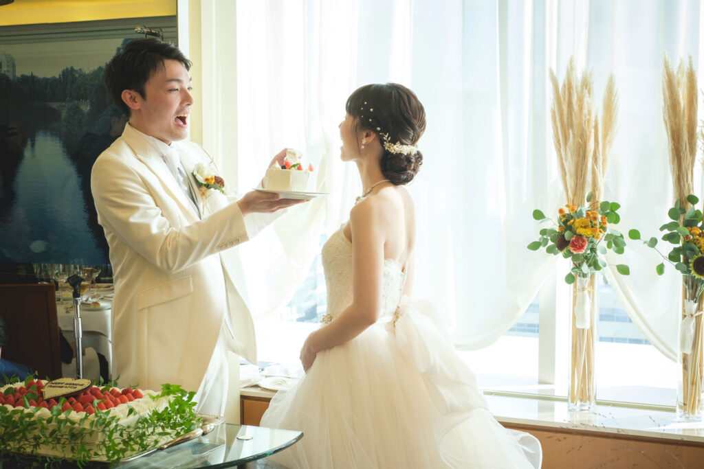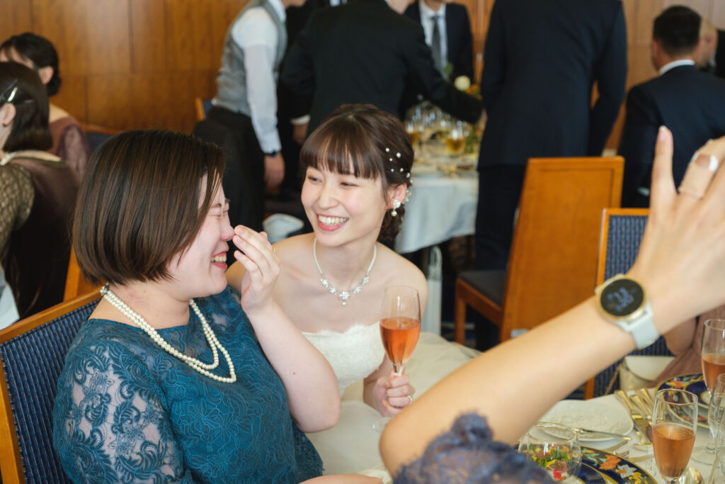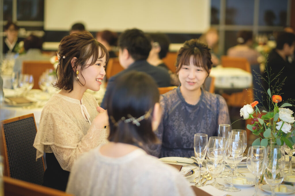 お料理が美味しいことを第一に考えたお二人が選んだ舞台 フレンチレストラン「ミクニサッポロ」。 パーティーでは、ご新婦様は自ら友人席へ挨拶に回るなど 形式にとらわれないアットホームな時間が流れていました。抽選で選ばれたご友人への「サプライズバイト」や「色々思いつくタイプ」のご新郎様と「笑顔にそれに応える」ご新婦様らしい、サービス精神旺盛な演出がゲストを飽きさせませんでした。